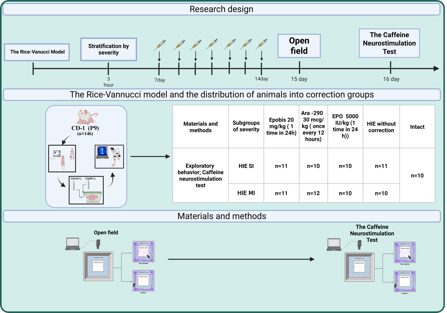 Keywords: hypoxic-ischemic encephalopathy, exploratory behavior, caffeine neurostimulation test, Epobis, Ara-290, EPO, laser speckle contrast imaging