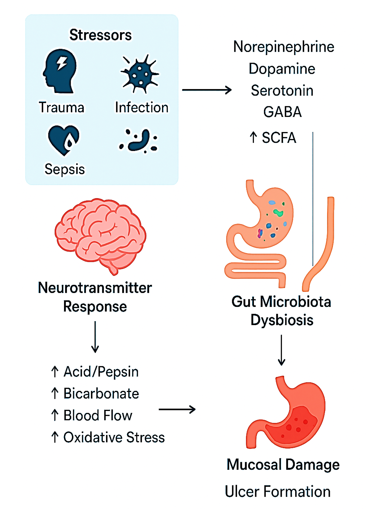 Therefore, the purpose of this review is to synthesize evidence on how gut microbiota and neurotransmitter signaling interact in stress-induced mucosal injury, with the aim of identifying novel mechanistic insights and potential therapeutic strategies targeting the gut–brain axis.
