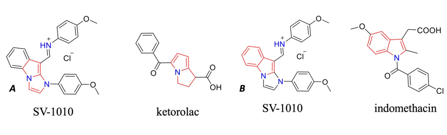 Figure 5. Comparison of the structure of SV-1010 with those of ketorolac (A) and indomethacin (B).