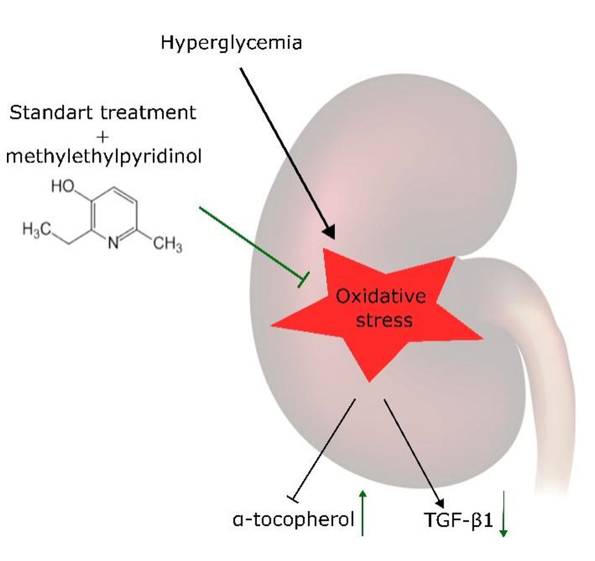 In the light of the above, it is crucial to develop new methods for the correction of CKD symptoms in patients with type 2 DM. These methods should be aimed at reducing the severity of oxidative and inflammatory stress. One potential approach may be the utilization of 3-hydroxypyridine derivatives. Among these, methylethylpyridinol hydrochloride has been identified as a promising candidate. Based on some research, this medication has been shown to enhance insulin sensitivity and improve glucose tolerance. Furthermore, it possesses antihypoxic and neuroprotective characteristics (Volchegorskiĭ et al. 2017). Other studies demonstrate that methylethylpyridinol hydrochloride can reduce the severity of oxidative stress due to its structure and properties that allow it to neutralise ROS (Popov et al. 2021a).